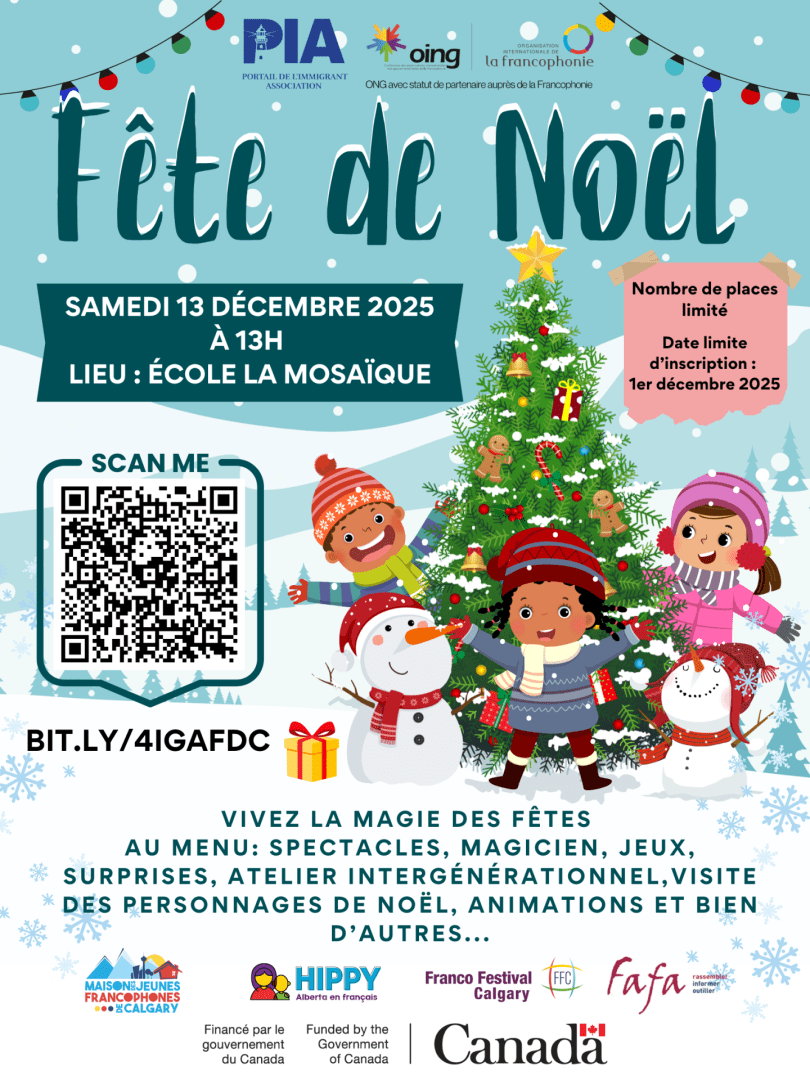 Lieu : École la Mosaïque, 199 Martindale Blvd NE, Calgary, AB T3J 2W2.
